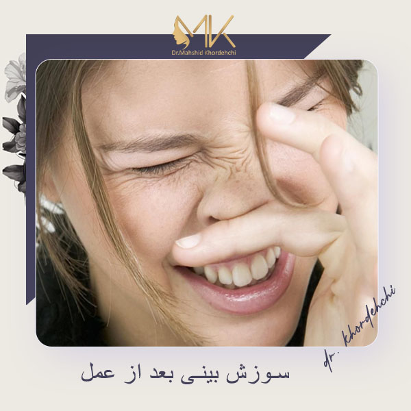 معمولا سوزش بینی بعد از جراحی یک موضوع موقتی است که جای هیچگونه نگرانی نیز ندارد. برای مثال در هفته اول بعد از عمل که در این دوران که ورم بینی در اوج خود است و گچ یا آتل روی بینی قرار دارد، سوزش ناشی از خشکی ناتوانی در تنفس طبیعی بسیار شایع است. بیماران معمولاً در این دوران دچار تنفس دهانی می شوند که باعث خشکی بیشتر مخاط بینی و گلو می شود. علاوه بر آن با برداشتن گچ بینی و شروع شستشوی بینی، رطوبت به تدریج برمیگردد. سوزش ناشی از خشکی کاهش می یابد، اما ممکن است سوزش ناشی از ترمیم اعصاب و حساسیت پوست همچنان وجود داشته باشد.